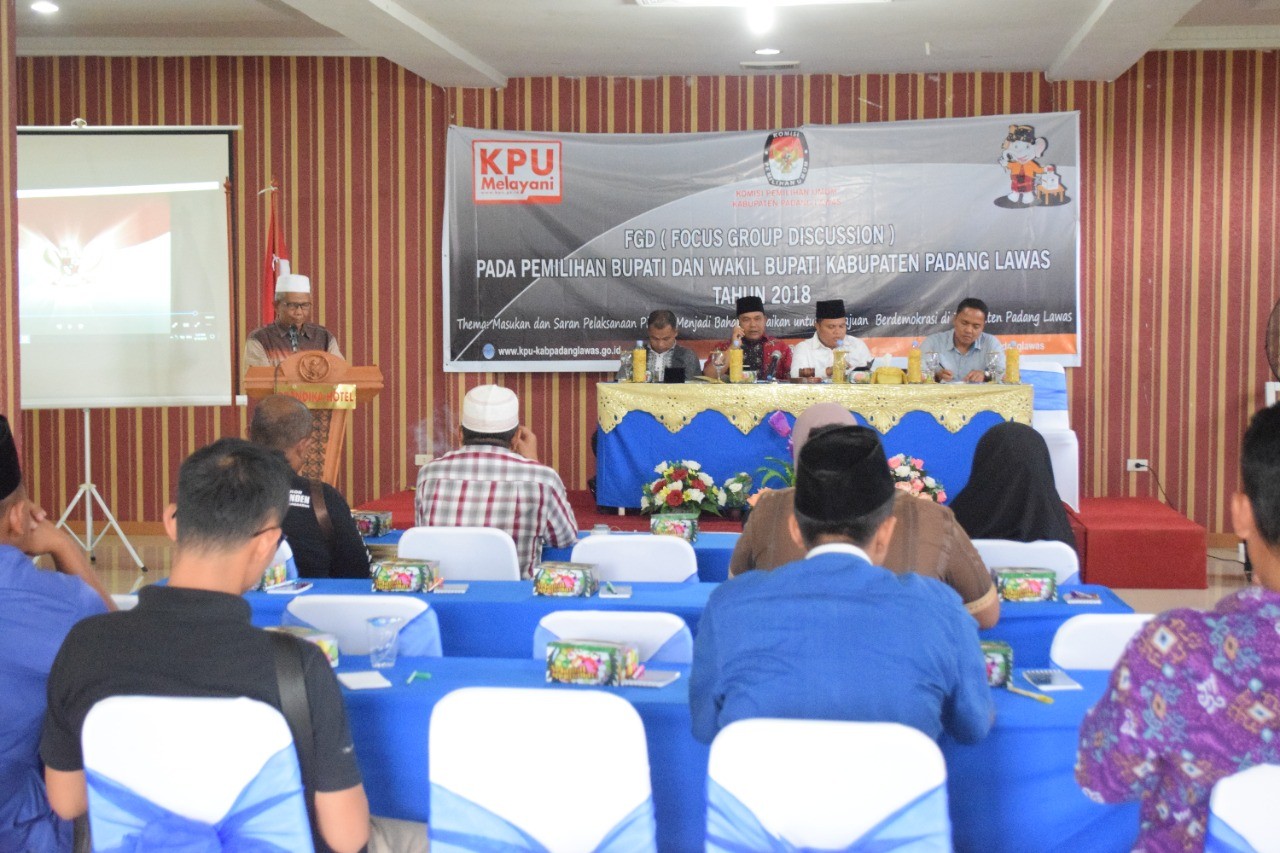 Sibuhuan- Komisi Pemilihan Umum (KPU) Kabupaten Padang Lawas Sukses melaksanakan kegiatan Focus Group Discussion (FGD) tahapan pemilihan Bupati dan Wakil Bupati Kabupaten Padang Lawas tahun 2018 di Aula Hotel Grandika Sibuhuan, Jumat (14/09/2018).